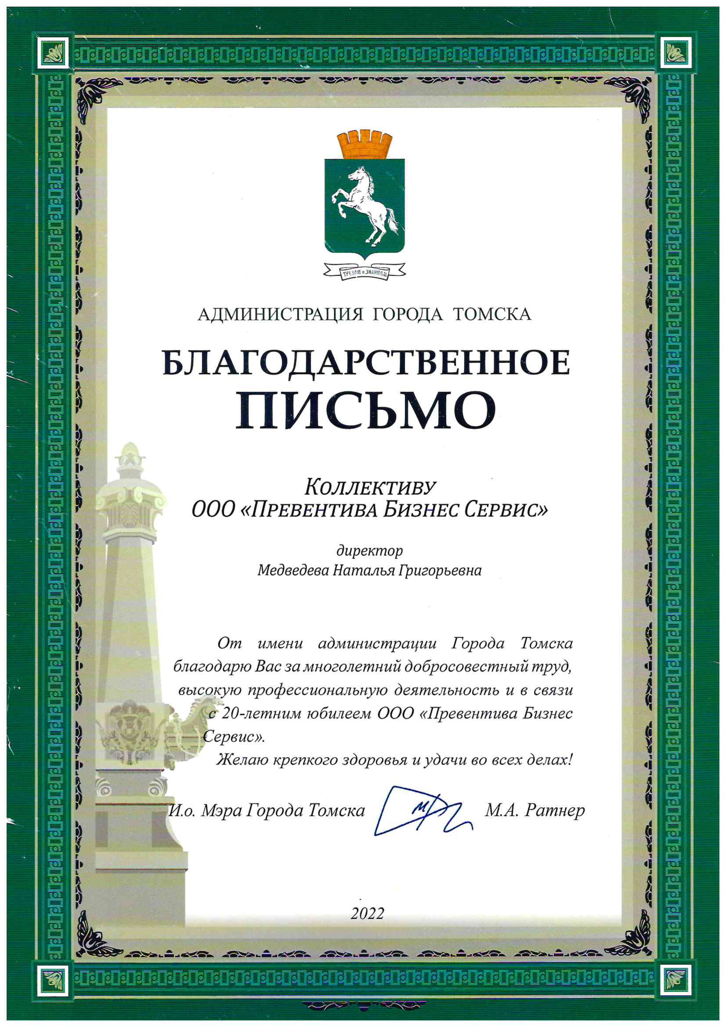 Компания «Превентива» была отмечена администрацией Томской области за высокий профессионализм, вклад в развитие деловой среды и достигнутые успехи в сфере бухгалтерского и налогового консалтинга. Награда стала признанием качества предоставляемых услуг, ответственного подхода к работе и доверия клиентов.
