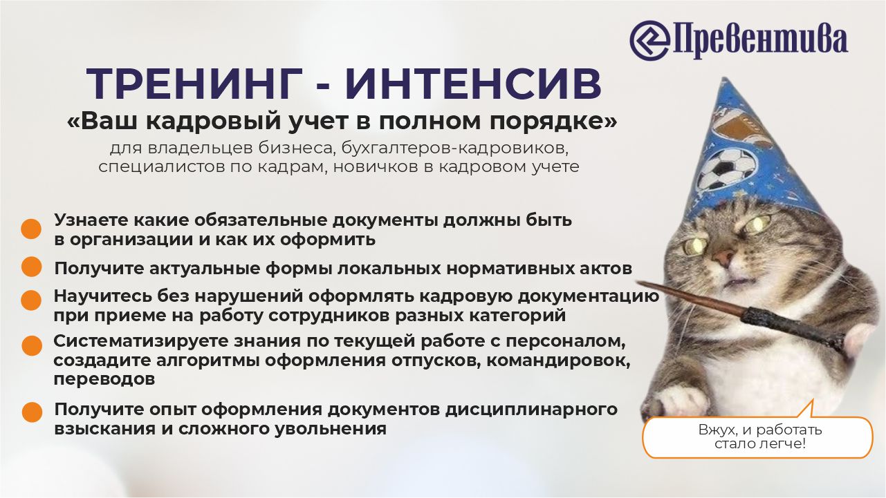- Формат тренинга: ёмкий, интерактивный, сверхполезный интенсив с игровыми элементами, практическими занятиями и мини-лекциями, презентациями, деловыми играми, алгоритмами основных кадровых процедур, не усвоить информацию у вас точно не получится!
